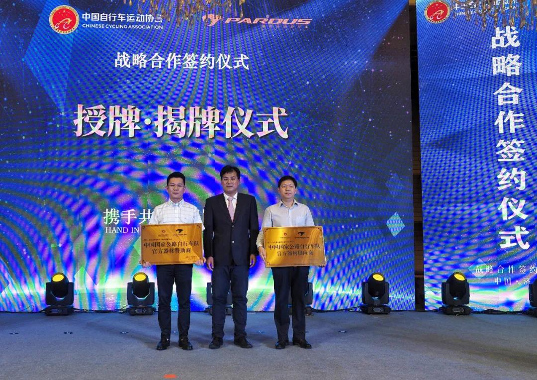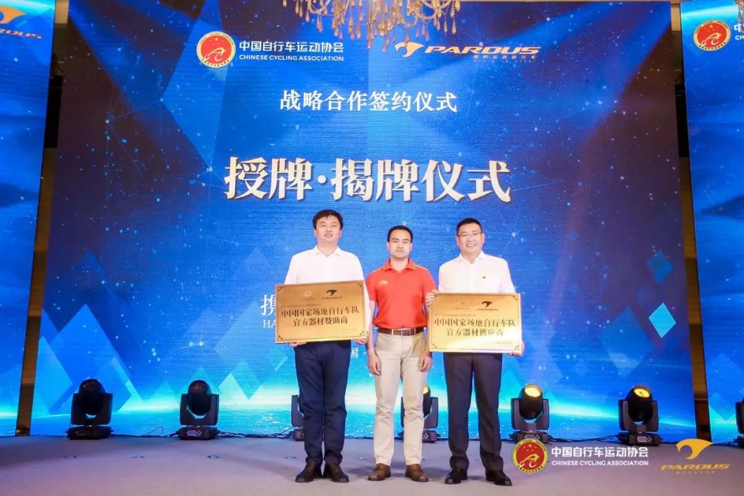 仪式上,中国自行车运动协会与好博瑞豹复合材料公司签订战略合作协议,标志着好博瑞豹正式成为中国国家队公路自行车、场地自行车这两个项目的器材赞助商和器材供应商。