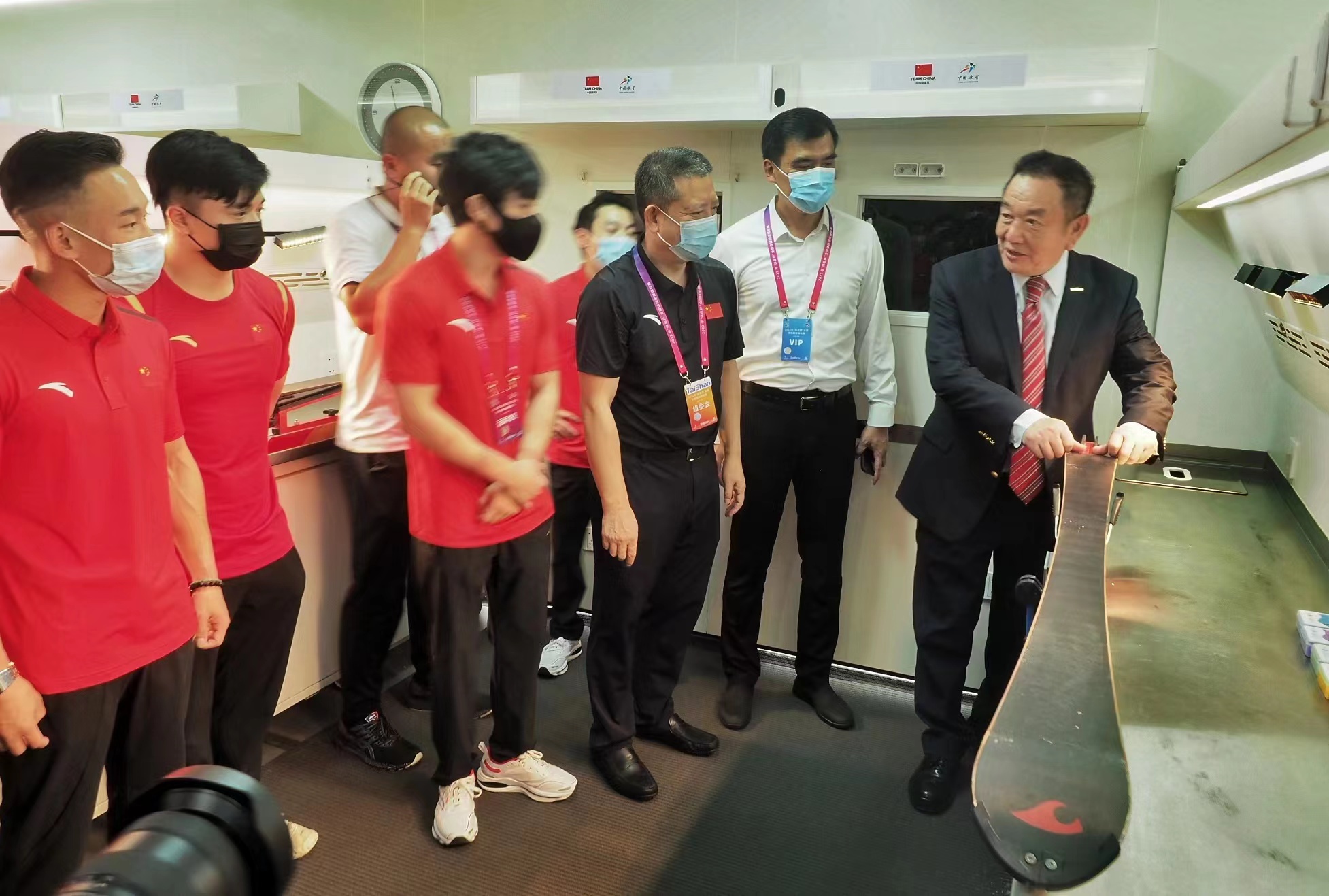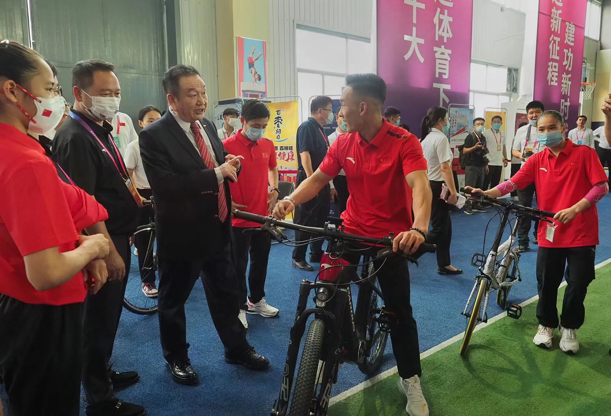 好博瑞豹碳纤维自行车就是好博体育立足科技创新、制定国际国内标准的代表产品。步入博物馆体验馆区,一排闪耀着科技感、未来感的自行车吸引了众人的目光。好博瑞豹是中国国家自行车队(公路、场地中长组)、中国国家铁人三项队器材供应商,2016年里约奥运会上成为首个登上奥运会自行车项目舞台的首个自主品牌,打破了欧美国家在这一领域的百年垄断。产品曾荣获“中国优秀工业设计金奖”、IF国际设计大奖等。运动员们亲自上阵,体验自行车的高性能。