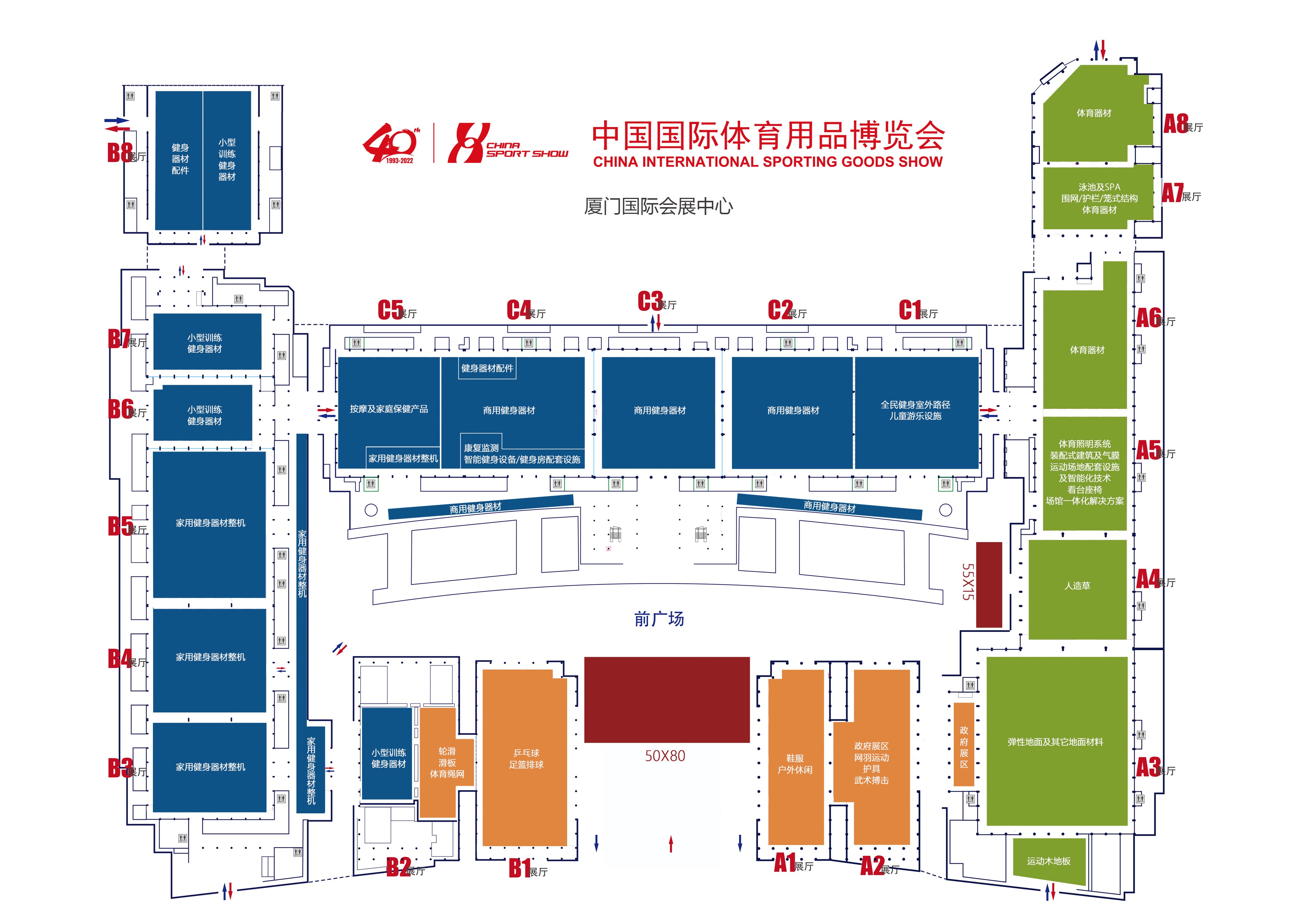 2022看点:新增老年人康复专区、体能训练专区、健身房培训、瑜伽、普拉提、蹦床专区。突出女性健身主题,智能交互、体养融合、体教融合。