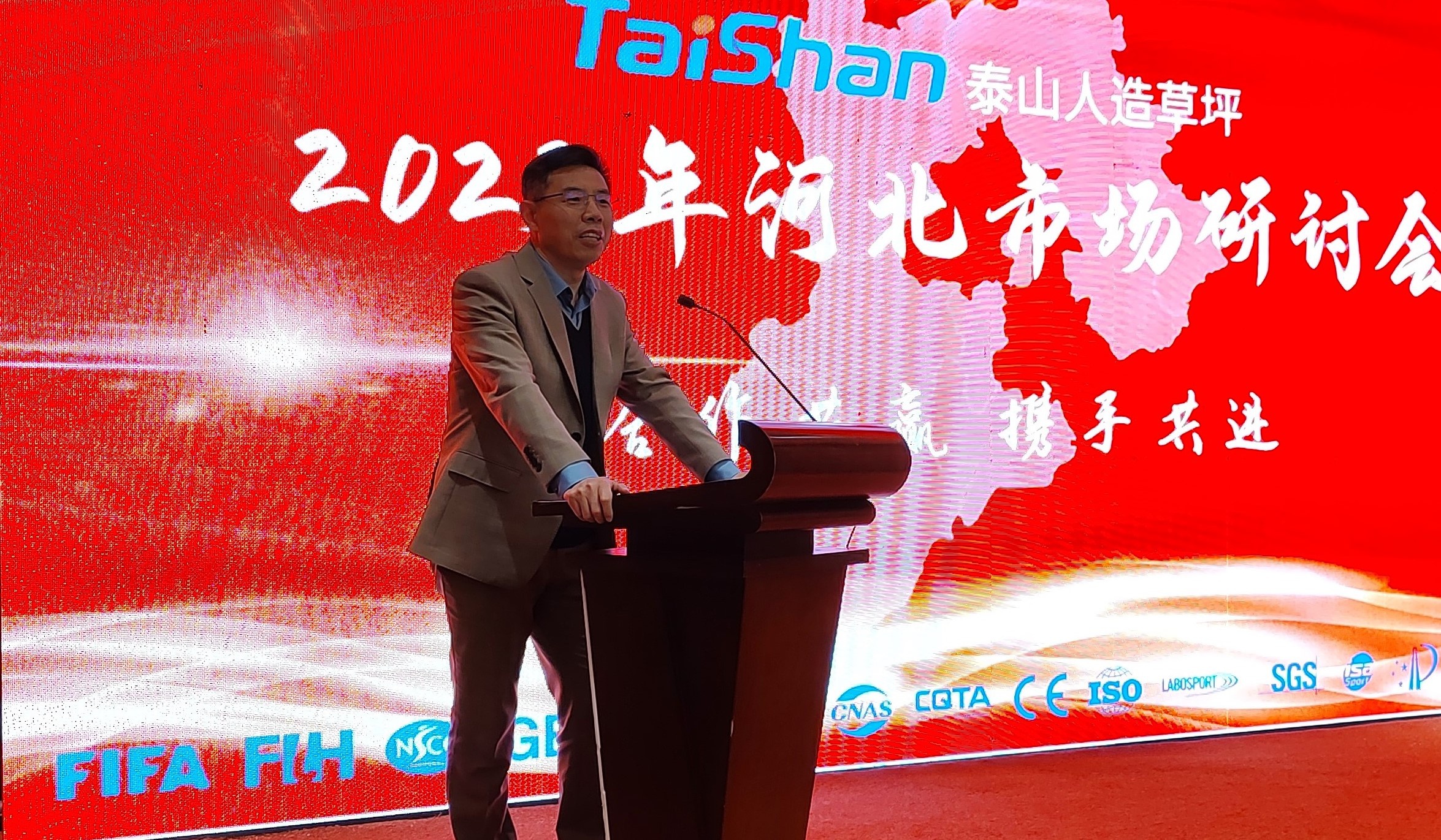 会上,中国体育用品检测中心检验部主任刘洋讲到,今天的好博人造草坪已发展成为人造草坪行业内深具影响力的公司,希望好博人造草坪和行业同仁一起积极进取,为人造草坪事业发展贡献力量。