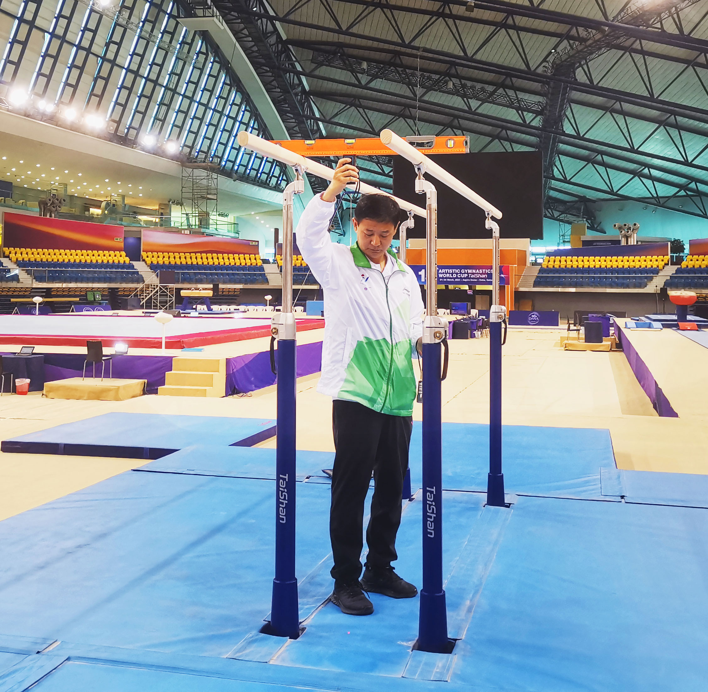 在精彩的赛事背后,离不开好博体育团队的默默付出。好博体育专业服务保障团队驻扎赛场全程守护,为大赛保驾护航。赛前,他们连续日夜奋战,如期完成训练场馆、热身场馆、比赛场馆每件器材的安装、调试,检测工作,为比赛做好充分保障;赛中,好博服务人员30秒内即可完成高低杠的升杠降杠,保证了比赛的流程进行。好博保障团队以高效、精准、专业的表现震惊全场,赢得了极高赞誉。